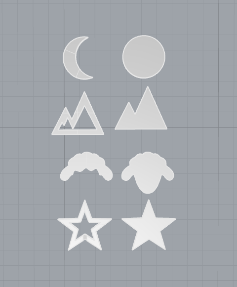 For our final project, we created an interactive moving picture. Artwork is beautiful on its own, but it doesn't have an interactive system. When you go to a museum and observe the paintings, you are engaging with the artwork, but the artwork doesn't respond. Ashleigh and I were inspired by art and shadow boxes, so we decided to create an object that looked like a moving painting. We wanted there to be physical items the user would hold/touch and the artwork would respond. For example, the items we modeled include a moon, mountains, star and sheep. The objects are capacitive touch sensors. If the user touches the moon sensor, then the moon observed in the artwork spins and changes phases. The mountain sensor play a dreamy, nighttime inspired song and the sheep sensor plays the sound of a real sheep. If the user touches the star sensor, then the stars in the sky twinkle. Sound, lights, and movement can be observed at the same time. This offers more interaction because 3 different people can gather together and they can each touch a sensor. From a distant our interactive object looks like a colorful shadow box, or a pop-up book. It was very interesting seeing people's reactions when they touched an object/sensor and the artwork responded with either lights, sound or movement. The sheep sound made people laugh because it was unexpected, and someone told us that our object could be paired with a storybook. The goal for our interactive object was to spark emotion, someone else said they felt like a kid playing with our project and I agreed. Our project could be left on the table alone, and people naturally felt inclined to touch the shapes.