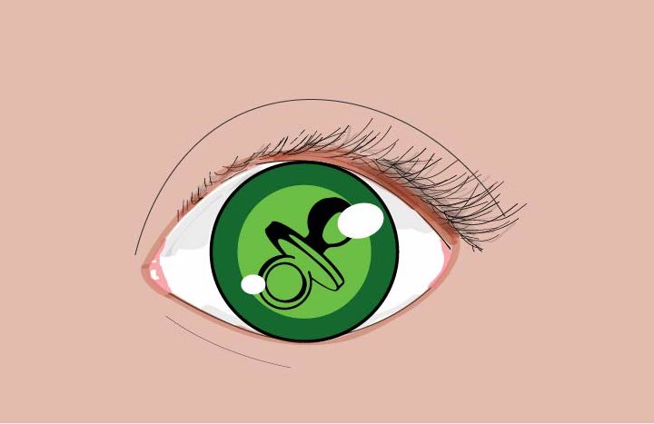 The eyes belong to the same person, but at different stages in their life. Birth, infancy, adolescence, adulthood, old age, and finally death. The pupil is replaced by a small image. The image represents what was seen as the most important thing for that person during that time.